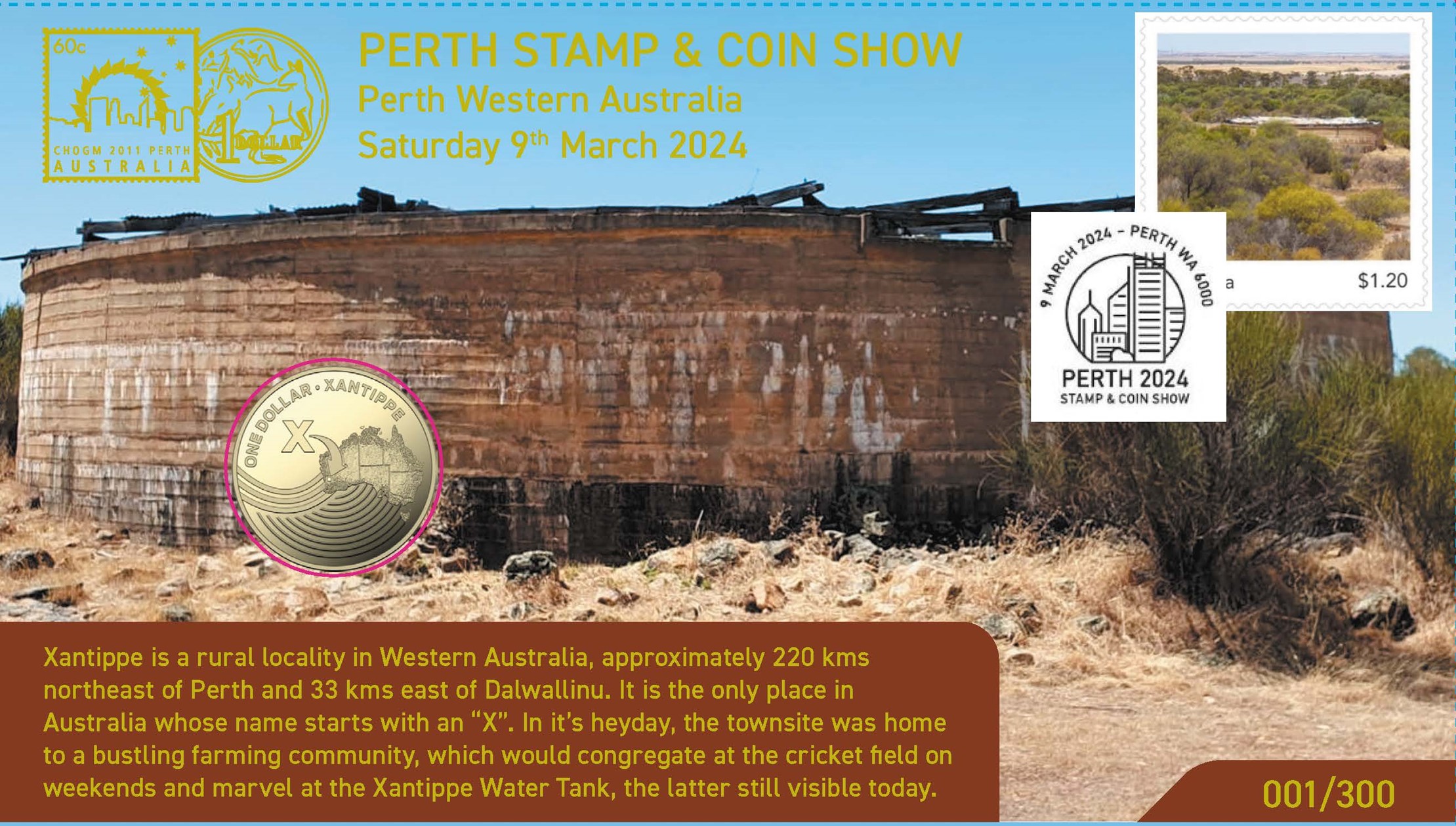 Day 2 Saturday 9th March 2024 Xantippe is a rural locality approximately 220 kms northeast of Perth which we visited to take the accompanying photos for the cover and MyStamp. This features the 2019 $1 "X" from the "Great Aussie Coin Hunt" set celebrating the only Australian place name beginning with the letter "X"! Price $